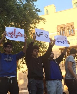 لكن ثمة من سخر من هموم طلاب الجامعة الأمريكية والشعارات التي رفعوها في الوقفة الاحتجاجية.