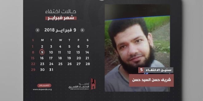 بالتزامن مع مرور 5 سنوات على إخفاء شريف حسن السيد حسن من المطرية في القاهرة ، جددت حملة أوقفوا الإخفاء القسري المطالبة برفع الظلم الواقع عليه، والكشف عن مكان احتجازه القسري والإفراج عنه ووقف الجريمة التي لا تسقط بالتقادم.