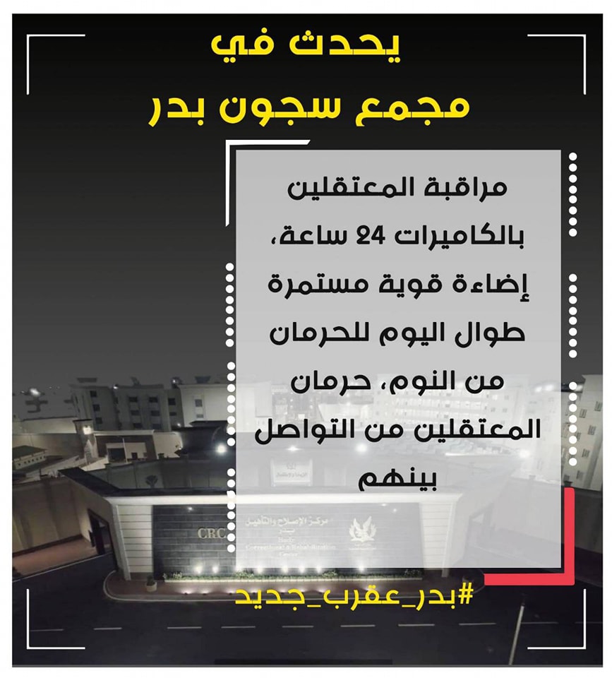 إلى ذلك طالب "مركز الشهاب لحقوق الإنسان" النائب العام بالتحرك واتخاذ اللازم قانونا وفتح تحقيق حول انتهاكات سجن بدر ٣ وإحالة مرتكبي الانتهاكات المتصاعدة فيه للتحقيق، وذكر أنه وردته رسالة جديدة من سجن بدر ٣ جاء بها :
