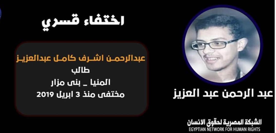 أكثر من 4 سنوات  مضت ولا زالت قوات الأمن بداخلية حكومة الانقلاب تخفي الطالب الجامعي “عبد الرحمن أشرف” قسرا، وذلك بعد اعتقاله تعسفيا ضمن مسلسل الجرائم والانتهاكات التي لا تسقط بالتقادم.