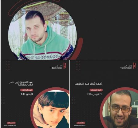 من بين هولاء المهندس "عبدالرحمن محمد محمود بطيشة" البالغ من العمر 30 عاما، والمختفي قسريا منذ اعتقاله يوم 30 ديسمبر 2017 من قبل قوات أمن البحيرة، أثناء عودته من العمل لزيارة زوجته بمركز إيتاي البارود.