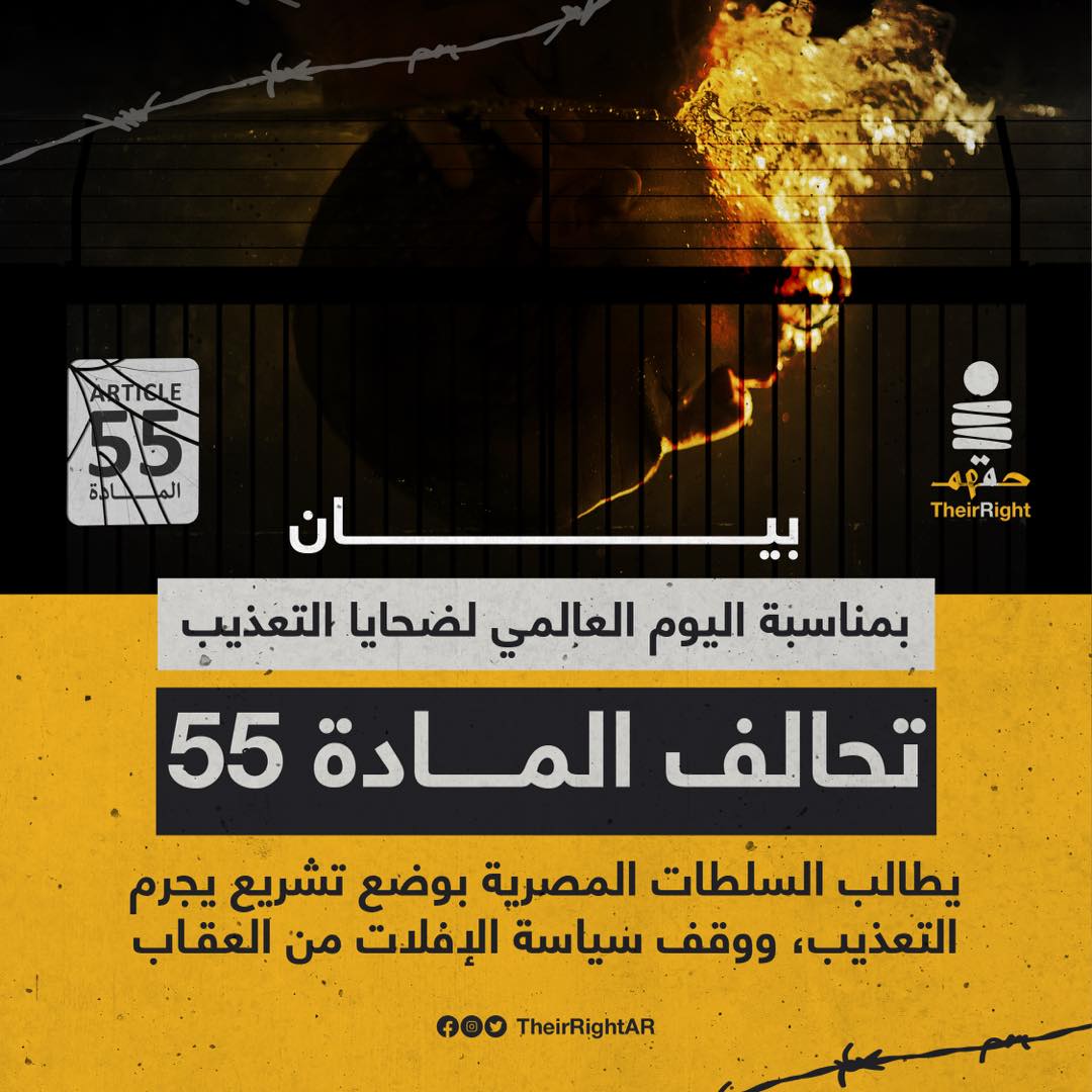 وأكد التحالف الذي يضم  مؤسسة لجنة العدالة، منظمة حقهم ، ومركز الشهاب لحقوق الإنسان ، الشبكة المصرية لحقوق الإنسان، ومنظمة نحن نسجل ، على أن التعذيب جريمة لا تقع فقط بحق الذين يقع عليهم الانتهاك، ولكنه جريمة تمس أمن المجتمع ككل وتجعل روح الخوف وعدم الشعور بالأمان هي المسيطرة على التعاملات بين الأنظمة ومواطنيها، مما يفقد الأنظمة دورها في حماية أمن المجتمع، وينزع عنها صفة الشرعية باعتبارها تعمدت عدم التقيد بالمواثيق والعهود الدولية الخاصة بمنع التعذيب وتجريمه.