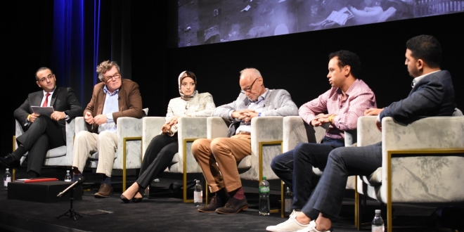 رافق عرض فيلم "ذكريات مذبحة" لنيكي بولستر حلقة نقاش ضمت نشطاء وصحفيين وشهود عيان من بينهم مراسل ميدل إيست آي خالد شلبي.
