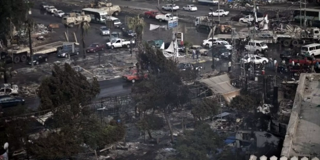 وبحسب التقرير، فقبل عشر سنوات في وضح النهار، ارتكبت داخلية الانقلاب وقوات الجيش أكبر مذبحة في تاريخ البلاد الحديث، وتم إرسال الجرافات لهدم مخيم احتجاج أقامه أنصار محمد مرسي ، أول رئيس منتخب ديمقراطيا في البلاد ، والذي انقلب عليه الجيش في عام 2013.