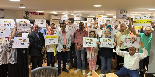 وكان العاملون في مكتب هيئة الإذاعة البريطانية (BBC) بالقاهرة، قد أعلنوا عن دخولهم في إضراب عن العمل لمدة 10 أيام قابلة للتمديد، وذلك احتجاجا على تدني رواتبهم وتدهور أوضاعهم المعيشية والسلوك التمييزي الذي تنتهجه المؤسسة ضدهم فيما يخص السياسيات المالية.