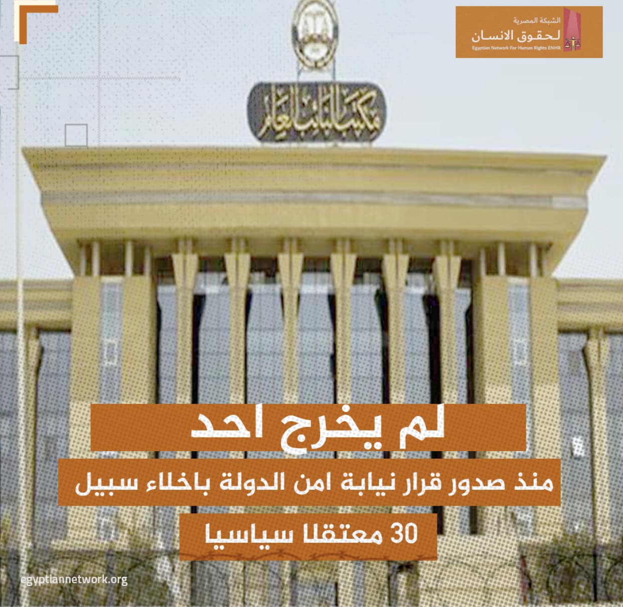 وكان عدد من المنظمات الحقوقية والمحامون قد نشروا أسماء 30 معتقلا سياسيا يوم التاسع عشر من أغسطس، محبوسين احتياطيا على ذمة قضايا ذات طابع سياسي بمزاعم نشر أخبار كاذبة، والانضمام لما يسمى بجماعة محظورة، ورغم مرور 6 أيام على صدور القرار، إلا أنهم لايزالون في محبسهم ولم يتم إخلاء سبيلهم بعد.