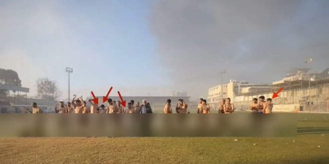 وقال حساب أحداث عالميه @hsmblwy7: “الكيان الصهيوني تخطى حقوق الانسانيه وتخطى المواثيق الدوليه العالميه اتجاه المدنيين،بأعتقال مجموعه من شباب غزه وتجريدهم من ملابسهم في ملعب اليرموك بغزه”.