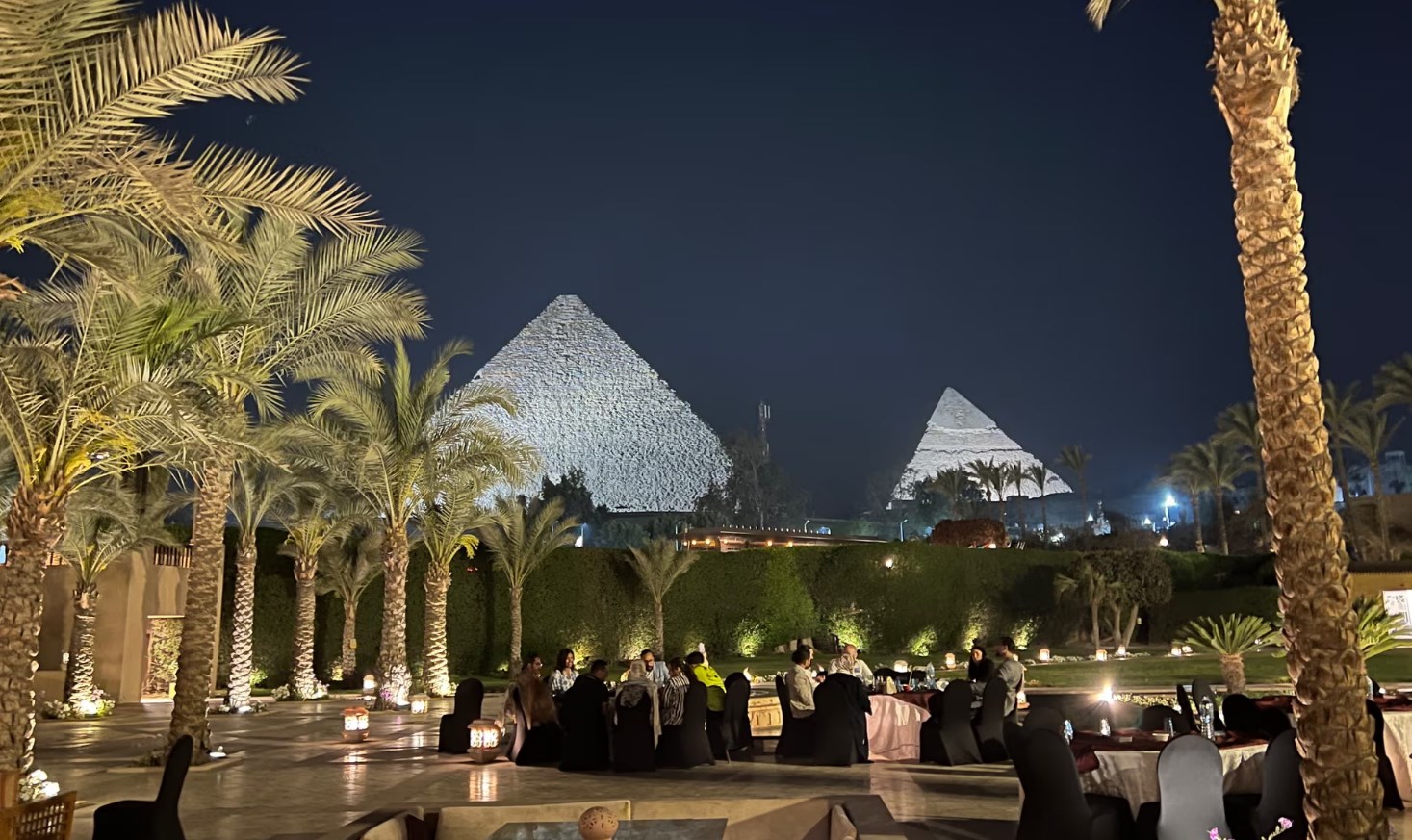 وبحسب تقرير نشرته الصحيفة، فمع حلول الغسق فوق الأراضي الخضراء لفندق ماريوت مينا هاوس، أصبح انعكاس الهرم الأكبر في الجيزة أكثر قتامة في بركة بنيت لتعكس آخر عجائب الدنيا السبع في العالم.