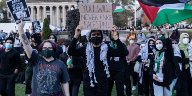 تضامن عدد من نشطاء ورواد موقع التواصل الاجتماعي مع التظاهرات المستمرة التي انطلقت في عدد من الجامعات الأمريكية تضامنا مع غزة.