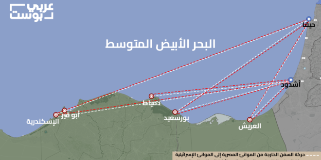 وخلال فترة الرصد لم تصل سفنا من دول عربية إلى موانئ إسرائيلية سوى من مصر، وهناك رحلات أخرى مجدولة للإبحار بانتظام بين موانئ الجانبين في الأيام المقبلة.