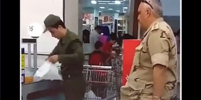أثار فيديو تم نشره على قناة الشعوب الفضائية، يظهر ضابط في الجيش المصري برتبة عالية يستغل أحد المجندين، في تعبئة مشترياته في السوبر ماركت، ثم بعد أن أنهى المجند التعبئة قام الضابط بدفع الحساب للكاشير.