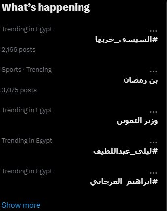 بين الأعلى تداولا على مواقع التواصل الاجتماعي في مصر والتصدر حافظ المصريون على التدوين عبر هاشتاج #السيسي_خربها لليوم الثالث على التوالي، انطلاقا من الأحد للمطالبة برحيل عصابة السيسى ورفضا من الشعب لموجة الغلاء التي لا تتوقف، والتي بدأت ولم تنته بالبنزين والكهرباء وتفاقم الأزمات المعيشية والاقتصادية.