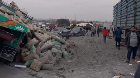 لقي سبعة مصريين مصرعهم وأصيب آخرون، أمس الأربعاء، في حادث مرور اصطدمت فيه تسع مركبات؛ شاحنات نقل وسيارات خاصة وحافلة ركاب، عند أعلى الطريق الدائري الأوسطي بالقرب من حلوان.