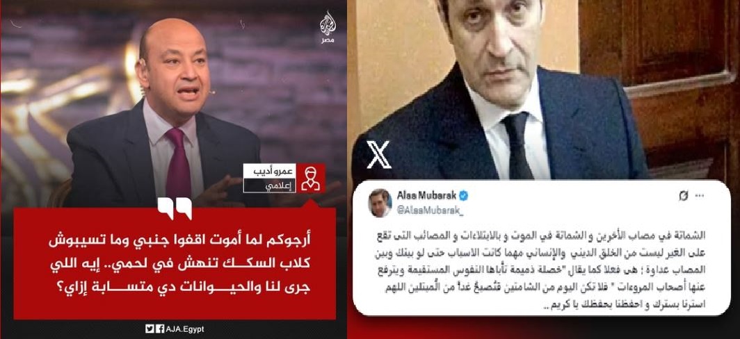 وعن تعليق عمرو أديب الذي دعا فيه الجماهير إلى إنقاذ لحمه من "النهش" ويقصد الشماتة في هلاكه كتب محمد أحمد Mohmed Ahmed "خايف من الشماتة و مش خايف من عقاب ربنا، ممكن تسيب التطبيل لو محدش هيقف معاك لاكن مش هتشيه علشان حرام ولا ذنوب تأيد الظالمين ولا عبرة من موت، الناس دي لا ترى إلا الدنيا حتى الموت تراه من زاوية الدنيا.. ربنا يرحمنا منهم ولا يجعلنا مثلهم".