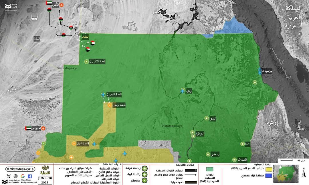 وبحسب المحلل السياسي السوداني إبراهيم الصديق علي؛ وصل أكثر من 260 عربة من المرتزقة الأجانب بقيادة كتيبة سبل السلام الليبية، إلى منطقة العوينات على الحدود السودانية المصرية الليبية، مساندة للمليشيا المتمردة هو ليس تحولا جديدا في الحرب وإنما انكشاف المستور والمخبوء وراء أجندة وأبعاد الحرب، والهدف زعزعة استقرار وأمن المنطقة وأهم دلالاتها:
