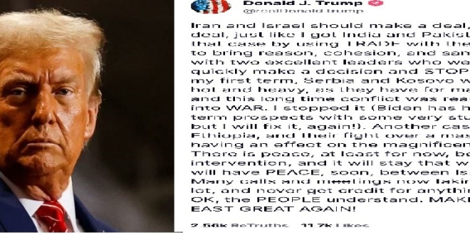 وكتب ترامب، "مثال آخر هو مصر وإثيوبيا وصراعهما حول سد ضخم يؤثر على نهر النيل العظيم"، وأن "هناك سلاما حاليا، على الأقل حتى الآن، بفضل تدخلي، وسيبقى كذلك!".