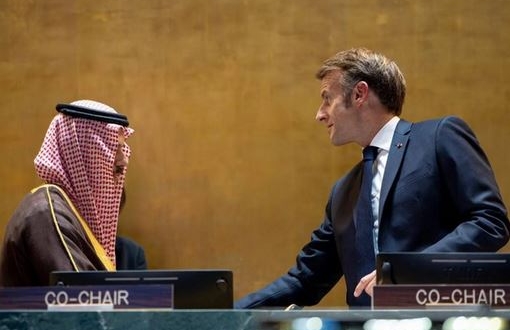ويساند ماكرون في إعادة طرح دولة فلسطين وحل الدولتين ولي العهد السعودي محمد بن سلمان وكان أمام انتقاد بأنه متسمر في خيانة القضية الفلسطينية، حيث ليس هناك دولتين هناك فقط فلسطين صاحبة حق الدولة و"إسرائيل" كيان معتد احتلال ليس له الحق البقاء على أرض فلسطين.