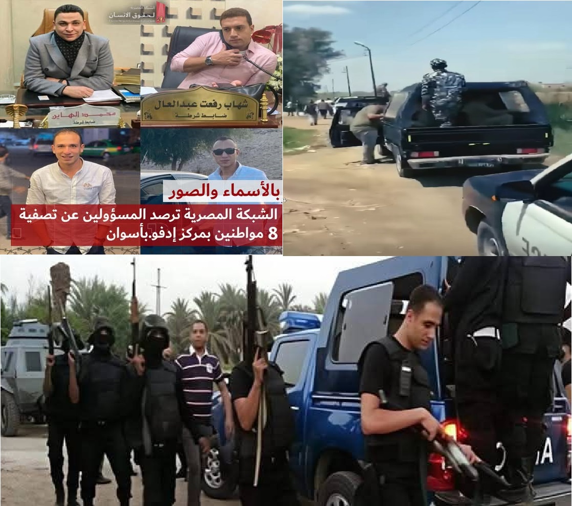رصدت الشبكة المصرية لحقوق الإنسان واقعتين منفصلتين في مركز إدفو بمحافظة أسوان، أسفرتا عن تصفية 8 مواطنين أبرياء خارج إطار القانون في شهري سبتمبر وأكتوبر. وكشفت أن المسئولين الرئيسيين وفق التقرير هم: