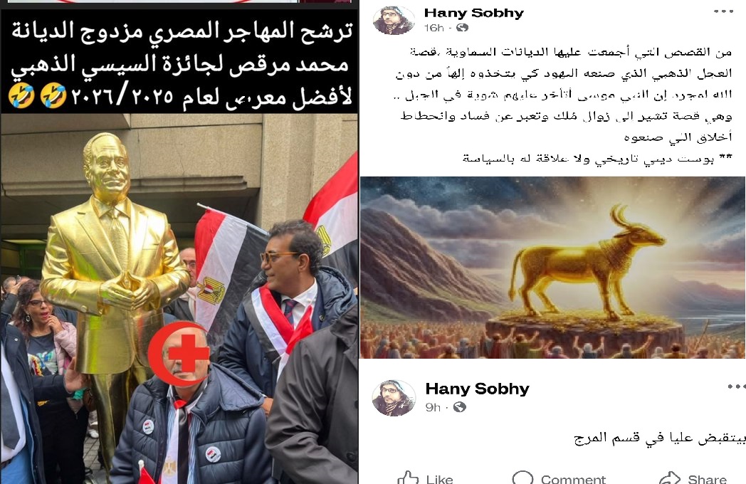 وعلق الناشط سيف الإسلام عيد @eid_alislam "إمبارح شاركت على فيسبوك منشورا عن شاب مسيحي معتقل من سنتين بسبب مظاهرات فلسطين، اللي بالمناسبة دعا لها السيسي بنفسه، اليوم بشارك هنا رغبة النظام في هدم الكنيسة، زي ما هدم مساجد قبلها، واعتقل شيوخ واعتقل ملحدين واعتقل ودعاة واعتقل رقاصات، واعتقل علماء واعتقل جهلة، واعتقل أغنياء واعتقل فقراء.