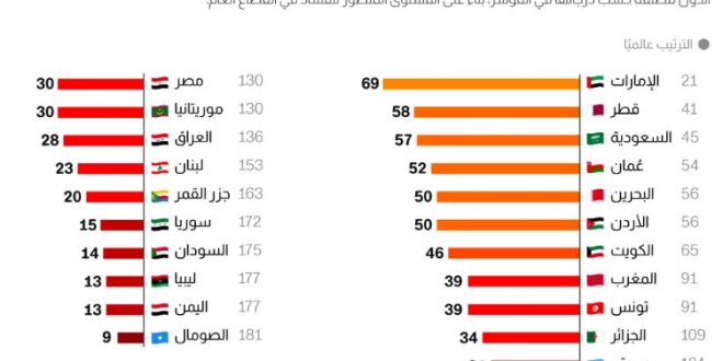 ولا يزال الفساد متجذرًا بعمق في منطقة الشرق الأوسط وشمال إفريقيا، حيث فشلت معظم الحكومات في معالجة فساد القطاع العام، وفقًا لمؤشر مدركات الفساد لعام 2025 الذي أصدرته منظمة الشفافية الدولية.