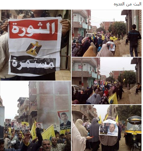 ومن أبو كبير التى شهدت مسيرتين والعاشر من رمضان وكفر صقر والعدوة بههيا مسقط رأس الرئيس محمد مرسى خرجت تظاهرات حاشدة عقب صلاة الجمعة تواصلا للتظاهرات التى انطلقت منذ الصباح من فاقوس وأبو حماد والإبراهيمية والحسينية وميت حمل ببلبيس.