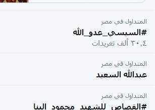 ‎أقرأ المزيد التعليقات على “#السيسي_عدو_الله” يتصدر تويتر.. ومغردون: تحوّل إلى هتاف موحّد بالثورات العربية مغلقة