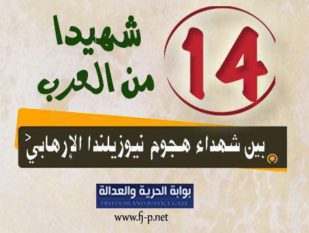 ارتفع عدد الشهداء العرب في حادث الهجوم الإرهابي على مسجدين في نيوزيلندا، الجمعة الماضية، إلى 14 شهيدًا من أصول عربية، من إجمالي نحو 50 شهيدًا بالهجوم. وأعلن سفير ...