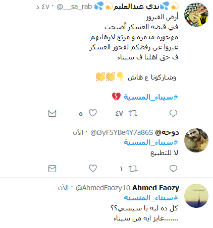 شهد هاشتاج “سيناء المنسية” تفاعلًا واسعًا من جانب رواد مواقع التواصل الاجتماعي؛ رفضًا لجرائم عصابة الانقلاب بحق أهالي سيناء، والتي تنوعت بين القتل والتصفية الجسدية والاعتقال والإخفاء القسري ...