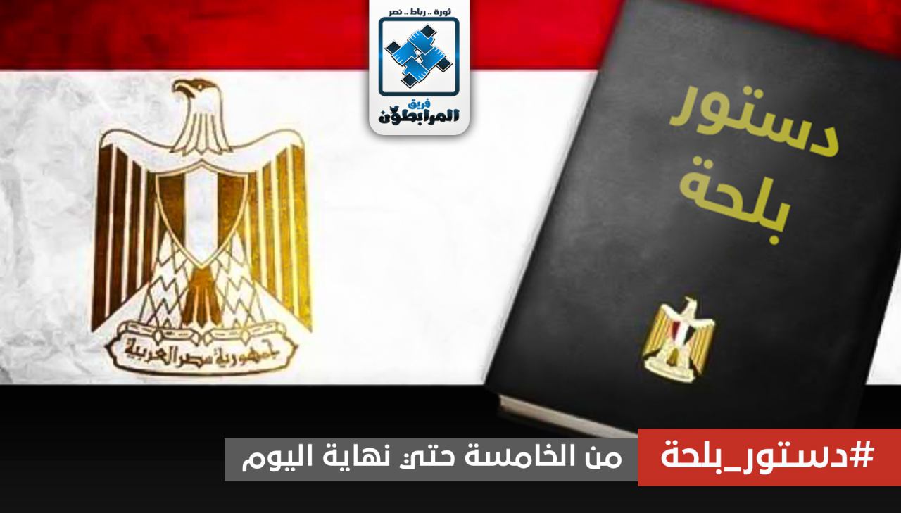 أطلق نشطاء على مواقع التواصل الاجتماعي هاشتاج #دستور_بلحه بعدما قررت هيئة السيسي للإنتخابات إجراء استفتاء على ترقيعات دستور الإنقلاب خلال 4 أيام بالداخل والخارج تبدأ بالجمعة وتنتهي الأحد ...
