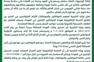 أعلنت السفارة السعودية بالقاهرة، في بيان لها نشرته قبل قليل من مساء الأحد، عن أن وزارة الخارجية السعودية تدعو عموم المواطنين والمواطنات الكرام المتواجدين في الخارج إلى إطلاق ...