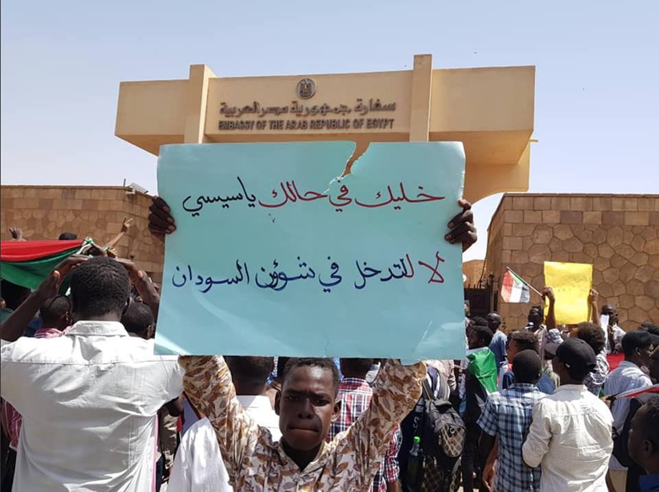تظاهر مئات السودانيين، اليوم الخميس، في محيط السفارة المصرية لمطالبة المنقلب عبد الفتاح السيسي بعدم التدخل في الشأن السوداني الداخلي. كان عشرات النشطاء من السودانيين قد نظموا وقفة ...
