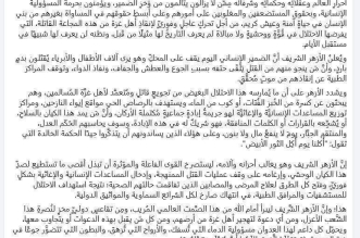 قلل مراقبون من اعتذار أعلنته مشيخة الأزهر الشريف عن حذف بيان "نداء عالمي" الذي حملت فيه المطبعين مع الاحتلال والمتعاونين معه على أرواح المسلمين في غزة، واعتبروه تبريرا ...