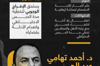 تواصل سلطات النظام الانقلابي في مصر الاعتقال التعسفي للمواطنين وإخفاءهم قسريا، قبل ظهورهم أمام النيابات على خلفية اتهامات ومزاعم ذات طابع سياسي، استمرارا لنهج تكميم الأفواه وتكبيل ...