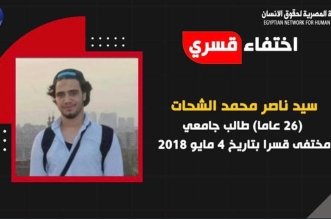طالبت الشبكة المصرية لحقوق الإنسان النائب العام بالتدخل والتحرك الفوري للكشف عن طالب كلية تنمية وتكنولوجيا المعلومات "أسامة صلاح حامد السعداوي" المختفي قسريا منذ اعتقاله تعسفيا من قبل قوات الانقلاب ...