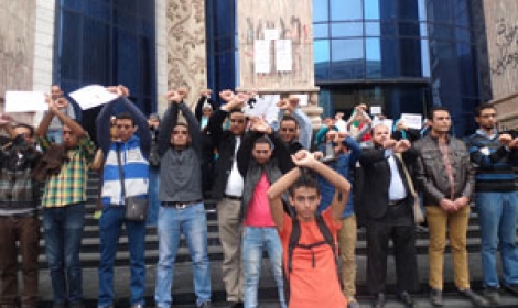 نظم عدد من صحفيى جريدة «المصريون»، اليوم الأحد، وقفة احتجاجية أمام نقابة الصحفيين، للمطالبة بالإفراج عن المصور الصحفي أيمن صقر، ومطالبة نقيب الصحفيين ضياء رشوان بالتدخل للإفراج عنه. ...