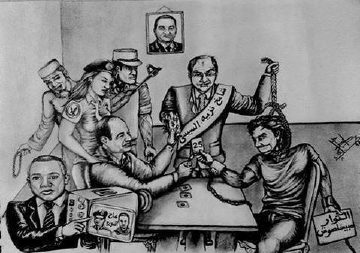 تداول عدد من النشطاء عبر مواقع التواصل الاجتماعي كريكاتير يجسد مؤامرة العسكر بقيادة السيسي قائد الانقلاب وحاشيته من القضاة والإعلاميين في محاولة القضاء على ثورة يناير. يظهر الكاريكاتير ...