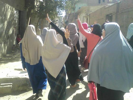 بالصور.. بني سويف..مسيرة صامتة للطالبات تندد باستمرار حبس الحرائر بسجون الانقلاب