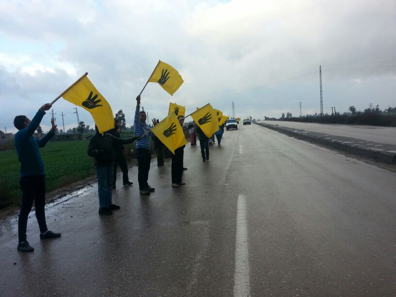 نظم أهالي قرية قمن العروس التابعة لمركز الواسطي بمشاركة أعضاء حركة "7 الصبح" سلسلة بشرية علي طريق بني سويف – القاهرة الزراعي. رفع المشاركون صور الدكتور محمد مرسي ...