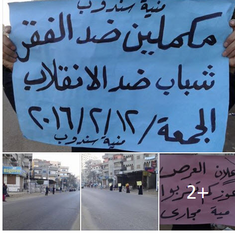 نظم عدد من ثوار المحافظات مساء اليوم الجمعة 12 فبراير 2016م عشرات المظاهرات الليلية تم رصد 14 منها، رفضا للانقلاب العسكري، في فعاليات جمعة "مكلمين ضد الفقر" الذي ...