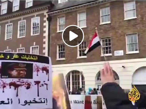 نظَّم أبناء الجالية المصرية في بريطانيا وقفة أمام سفارة الانقلاب في لندن؛ رفضًا لمسرحية قائد الانقلاب عبد الفتاح السيسي، مؤكدين رفضهم للانقلاب وتمسكهم بالشرعية وبالمسار الديمقراطي في مصر. ...