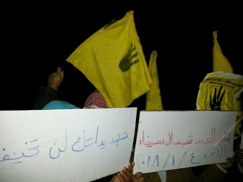 نظم ثوار بئر العبد بشمال سيناء وقفة احتجاجية مساء اليوم الأحد ضمن فعاليات أسبوع “تهديداتك لا تخيفنا”، تنديدا بحكم العسكر الدموي وممارساته القمعية بحق أهالي سيناء. رفع الثوار ...