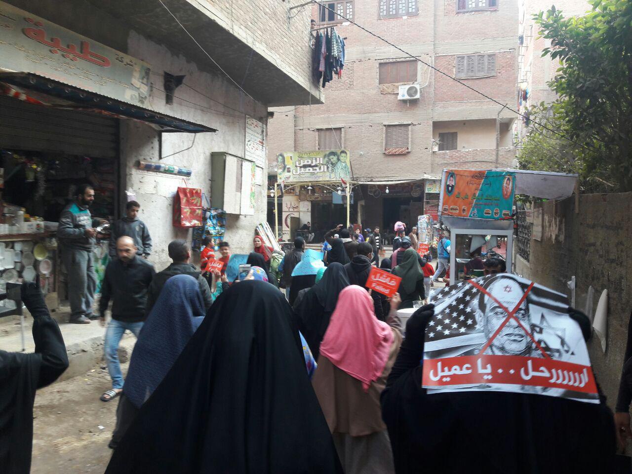 نظمت حرائر حوش عيسي مسيرة ظهر اليوم، للتنديد بمسرحية الرئاسة التى يجريها السيسي وعصابته، مؤكدات عدم الاعتراف بها لأن لمصر رئيس بالفعل وهو الرئيس محمد مرسي، وساخرات من ...