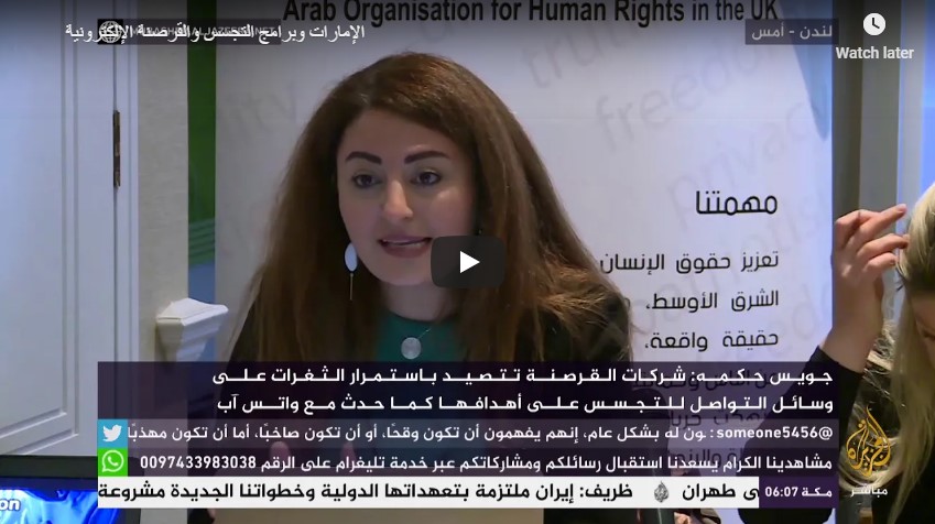 عقدت المنظمة العربية لحقوق الإنسان ندوة في مقر البرلمان البريطاني، أمس، حول انتهاك دولة الإمارات قوانين الخصوصية وقرصنتها الإلكترونية للتطبيقات ووسائل التواصل الاجتماعي، عبر شراء برامج التجسس من شركات إسرائيلية.