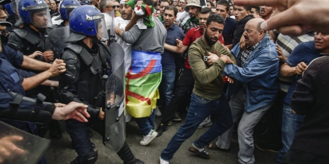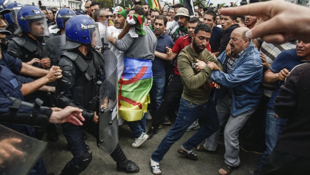 مع صورة لقوات الشرطة وهي تمنع المتظاهرين من الوصول إلى نقطة “درج البريد المركزي” في العاصمة الجزائرية، الجمعة الماضية، اعتبرت “فرانس 24” في تساؤل وإجابة في آن واحد أن عسكر الجزائر في طريقهم للانقلاب على الثورة والاستفراد بالحكم، وأكدت الوكالة أن مظاهرات الجمعة الماضية الـ14 شهدت “تطويق العاصمة واعتقال العشرات “بشكل ممنهج” حسب شهود”.
