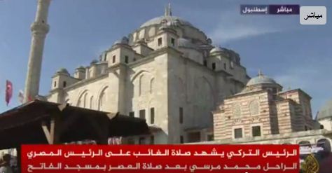 كانت كبرى مساجد تركيا قد شهدت، ظهر اليوم، أداء صلاة الغائب على روح الرئيس مرسي، ففي مدينة إسطنبول، أدى الآلاف من العرب والمصريين والأتراك، صلاة الغائب على روح الرئيس مرسي في مسجد الفاتح وسط المدينة، وتظاهر آلاف الأتراك والمصريين وأبناء الجاليات العربية بتركيا، بعد الصلاة، مطالبين بالتحقيق في جريمة الاغتيال وإسقاط الانقلاب.