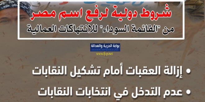 اشترطت "لجنة معايير العمل" والتي تتبع منظمة العمل الدولية 4 شروط لرفع اسم مصر من القائمة السوداء التي تعدها منظمة العمل الدولية للدول الأكثر انتهاكا للحقوق والحريات النقابية.