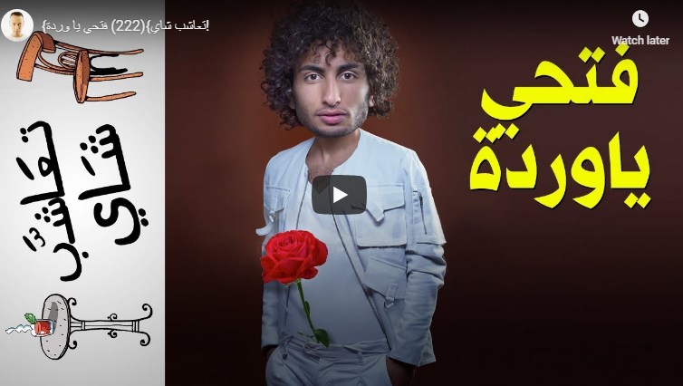 نشر الفنان أحمد بحيري حلقة جديدة من برنامجه "تعاشب شاي" على موقع "يوتيوب" بعنوان "فتحي يا وردة!".