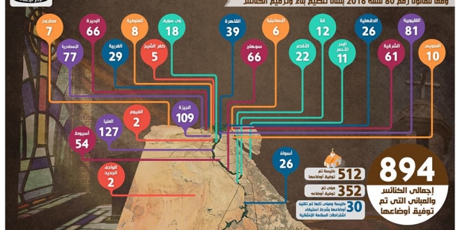 في أبريل 2019 الماضي، وتزامنًا مع الاحتفالات بعيد القيامة المجيد، نشر المركز الإعلامي لمجلس الوزراء إنفواجرافين حول ملف تقنين أوضاع الكنائس رصد فيها أعداد الكنائس التي تم تقنينها حتى ذلك الحين (894)، وبالقرار الأخير اول يوليه 2019، بتقنين 127 كنيسة أخرى يكون العدد 1021.