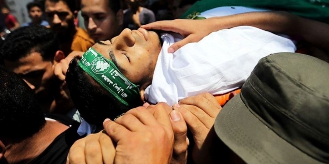 وهتف المشيعون عبارات غاضبة تطالب المقاومة بالرد على جرائم الاحتلال، وضرورة الاستمرار بمسيرات العودة حتى تحقيق أهدافها.