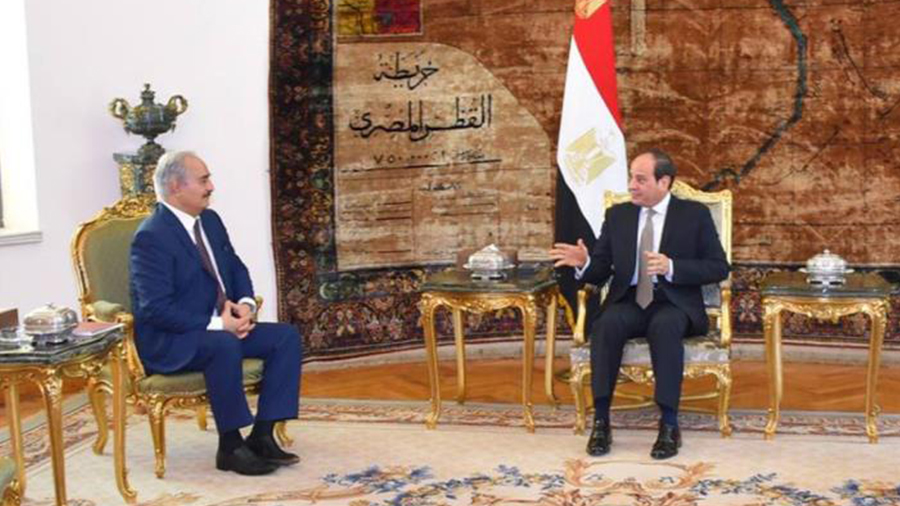 في حين يطالب السيسي الأمم المتحدة بإفساح المجال لعدم تجريم من يرسلون الأسلحة لحفتر، ويعلن ذلك في لقائته مع المسئولين الغربيين.